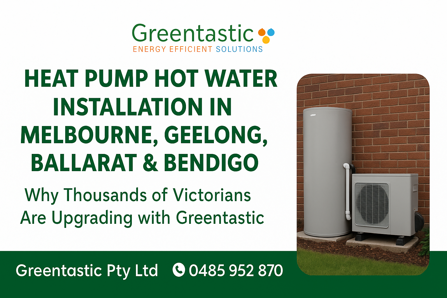 Greentastic Pty Ltd helps Victorian families choose the right heat pump, understand rebates, and enjoy a professional, compliant installation — all with zero hassle.